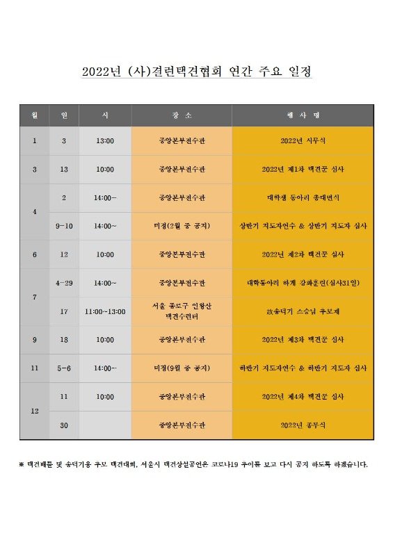 2022년 결련택견협회 연간 주요 일정표 입니다.